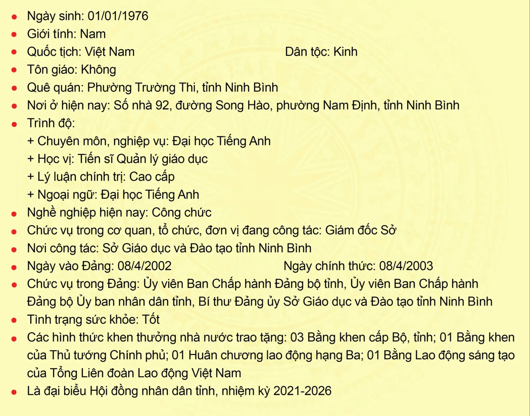 Tiểu sử tóm tắt người ứng cử đại biểu Hội đồng nhân dân tỉnh Ninh Bình nhiệm kỳ 2026-2031 (Đơn vị bầu cử số 14)