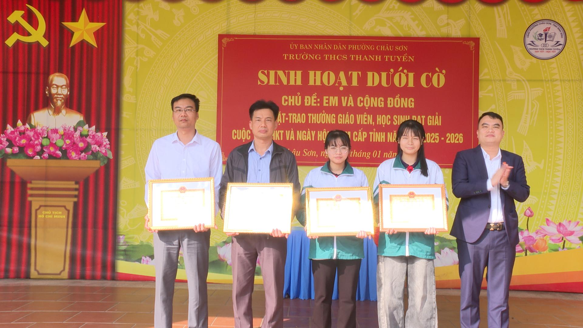 Tại buổi sinh hoạt đồng chí Phạm Lê Hùng – Phó Chủ tịch UBND phường đã trao giấy khen của Chủ tịch UBND phường Châu Sơn cho các thầy cô giáo và học sinh đạt thành tích xuất sắc trong cuộc thi KHKT và Ngày hội STEM cấp tỉnh năm học 2025- 2026./.